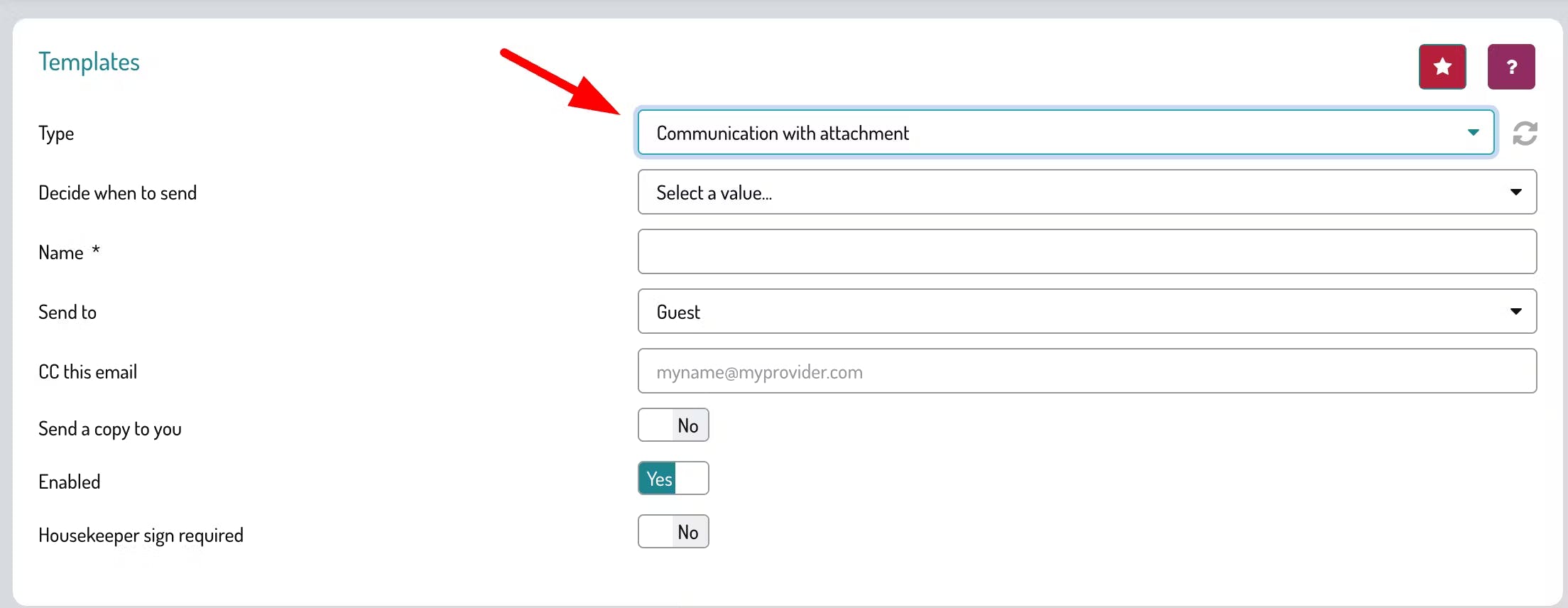 First of all, you will have to create a Template*, by selecting communication with attachment as Type and customizing the Text 📃