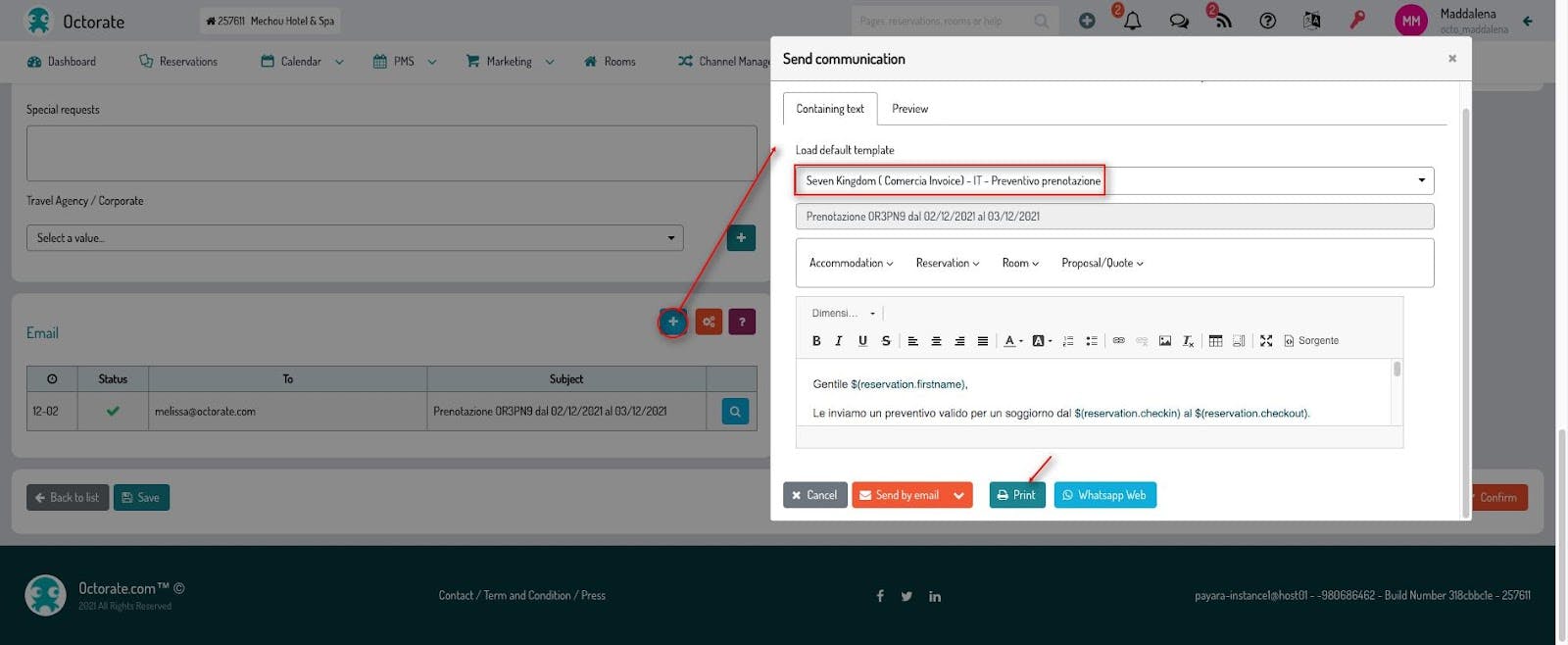 By following the same procedure, you can also decide to assign the template to specific room/apartment types and/or to one or more real rooms of the PMS.