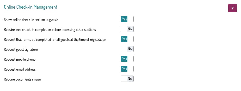 By enabling this option, the system will ask guests to complete all the registration forms required for their reservation.Request guest signatures