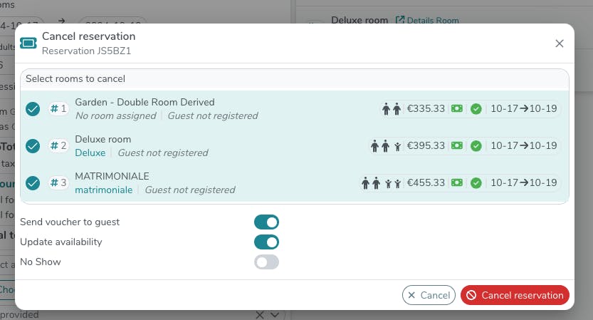 In the reservation you will find on the right the list of all the rooms booked: