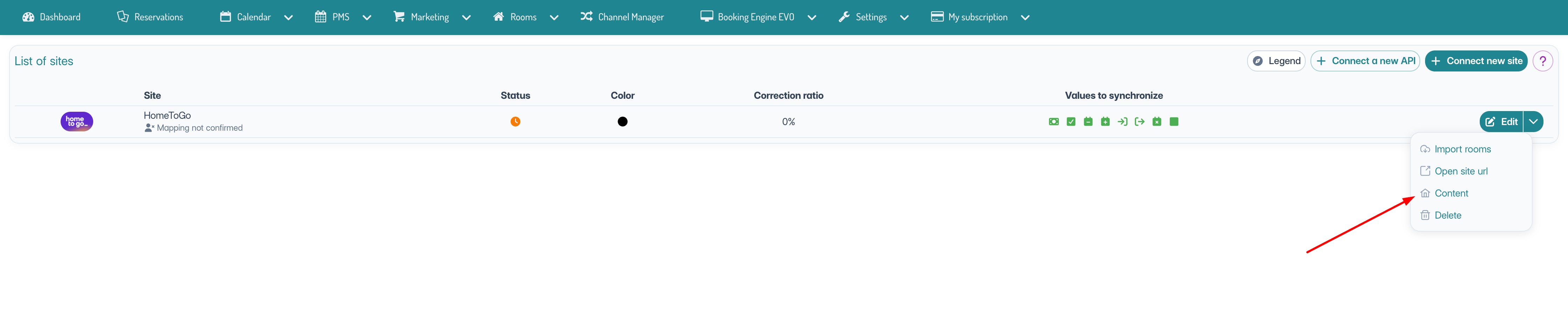 To connect Hometogo you will need to create your listing directly from your Octorate account.