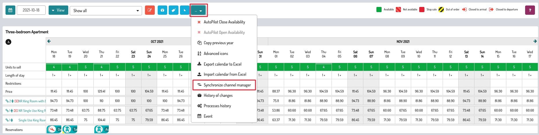 To start a synchronization, enter the Calendar section, click on the blue button with the 3 dots, as you can see here π , then choose Synchronize Channel ManagerΒ Β