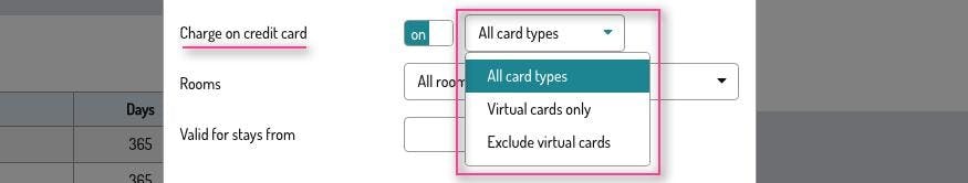 You can also choose the type of Card you wish to charge: all card types, virtual cards only, exclude virtual cards.