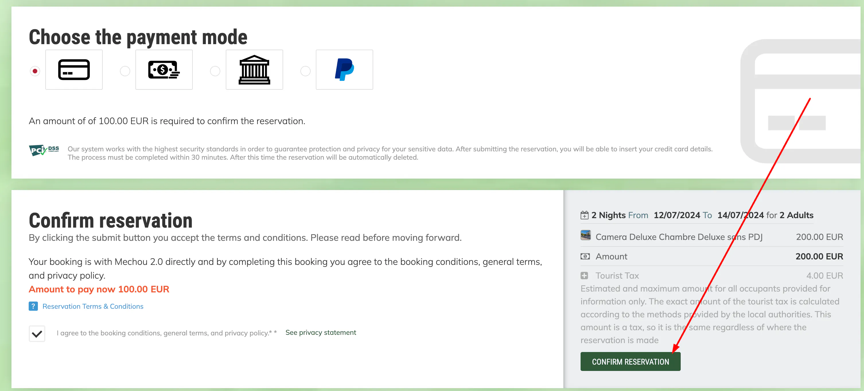 Once the customer gets the offer by email, they will click on the link contained in the message to confirm the reservation.