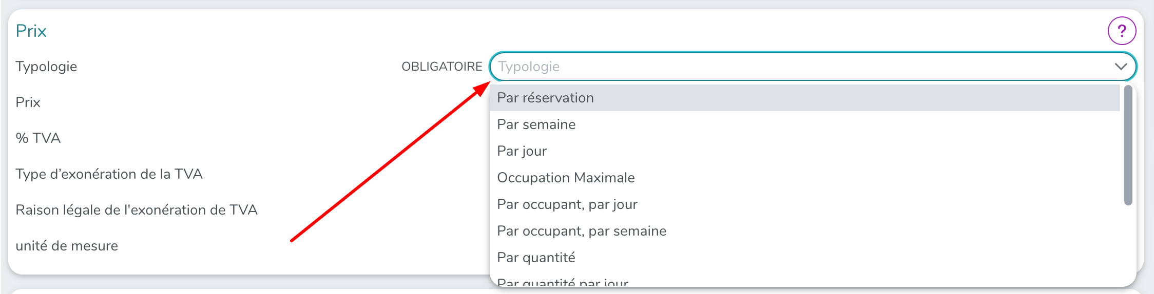 Choisissez le mode de calcul de l’extra : par personne, par réservation, etc.
