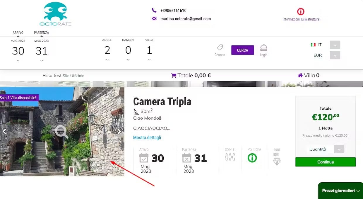 Les photos de chaque apartment/chambre peuvent être téléchargés par la section dédiée dans Appartements/chambres > Modifier > Images