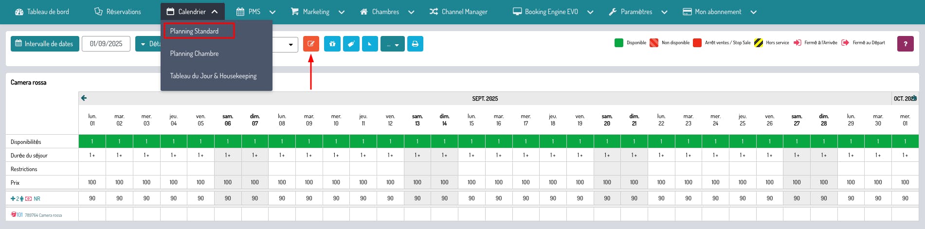 Afin de configurer cette fonction sur Octorate, allez dans la section Calendrier > Planning Standard et cliquez sur le bouton orange [Editeur Avancé]