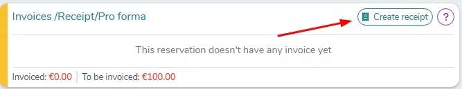 Dans les détails de la réservation, cliquez sur le bouton Créer reçu/facture
