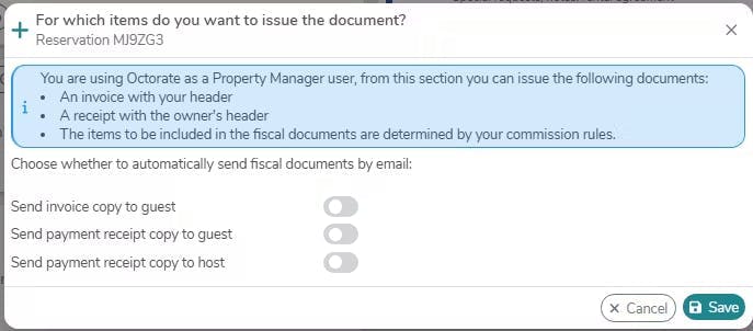 Si vous êtes un gestionnaire de propriété et que vous utilisez notre fonction Octobleu, vous disposez désormais d’un nouvel outil pour émettre les documents fiscaux pour les clients de la manière qui vous convient le mieux, en fonction des accords établis avec vos propriétaires.