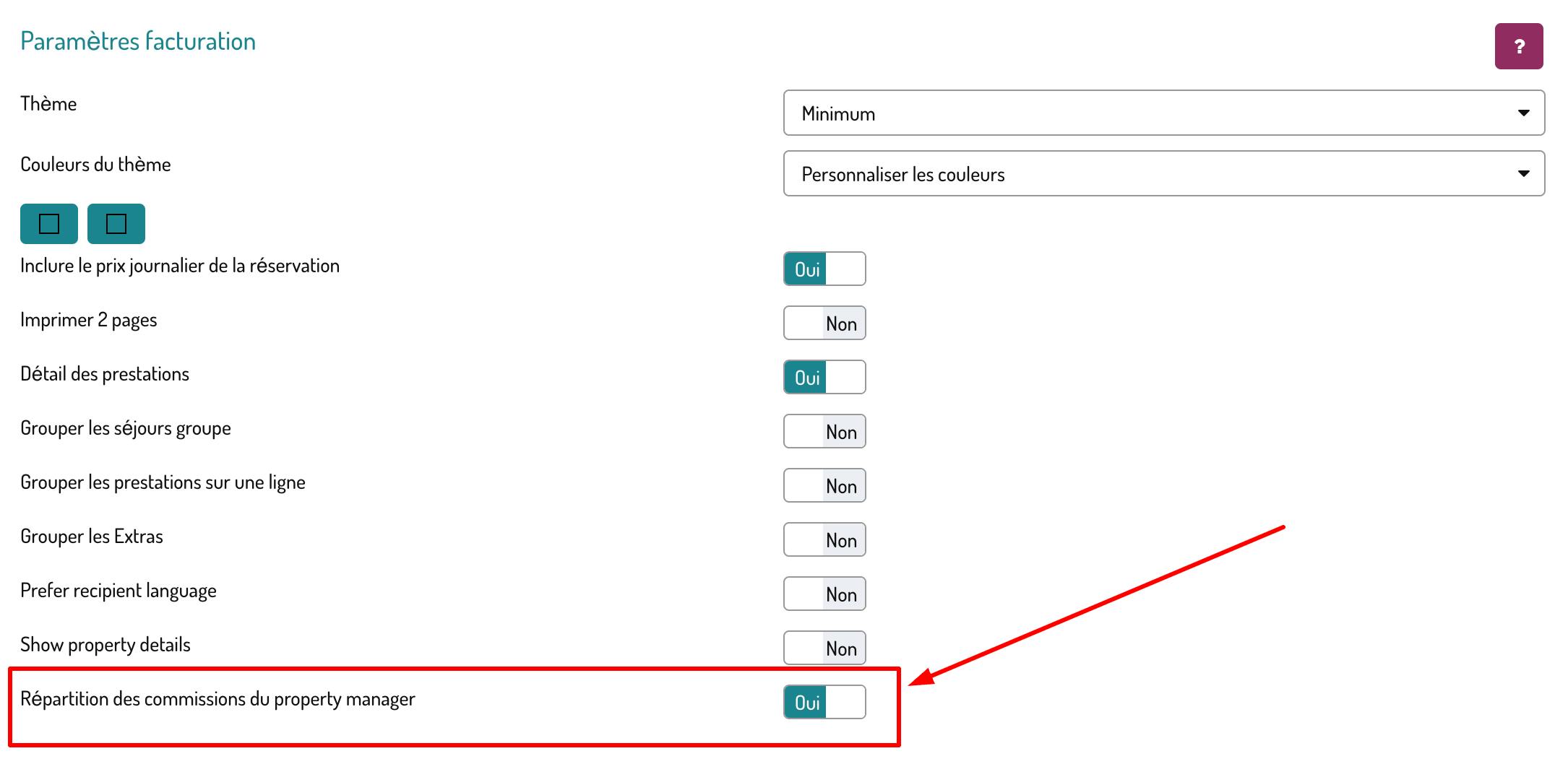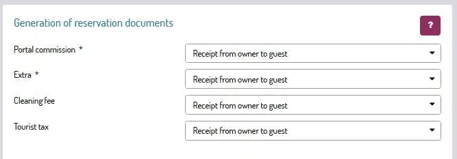 Ici, vous pouvez décider si les champs qui composent la réservation devront être inclus dans la facture du gestionnaire de propriété ou dans le reçu du propriétaire.