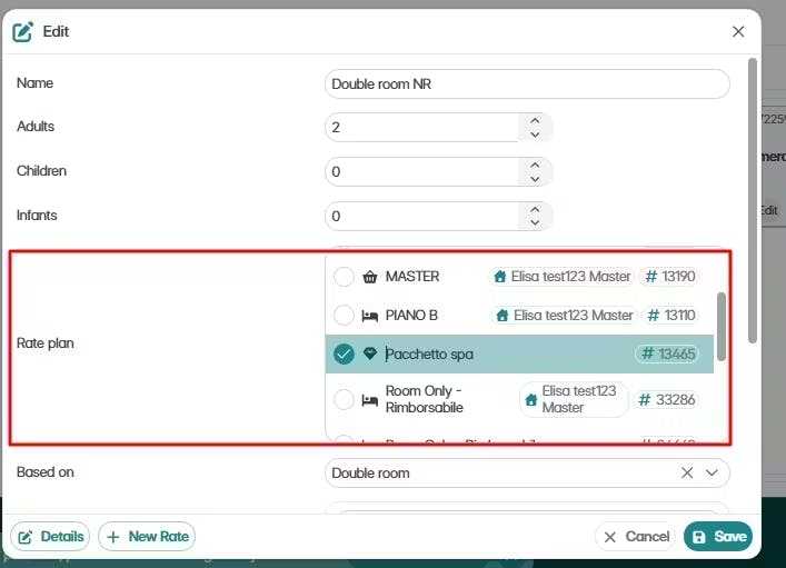 Pour chaque chambre, vous pouvez créer différentes tarifs dérivés :