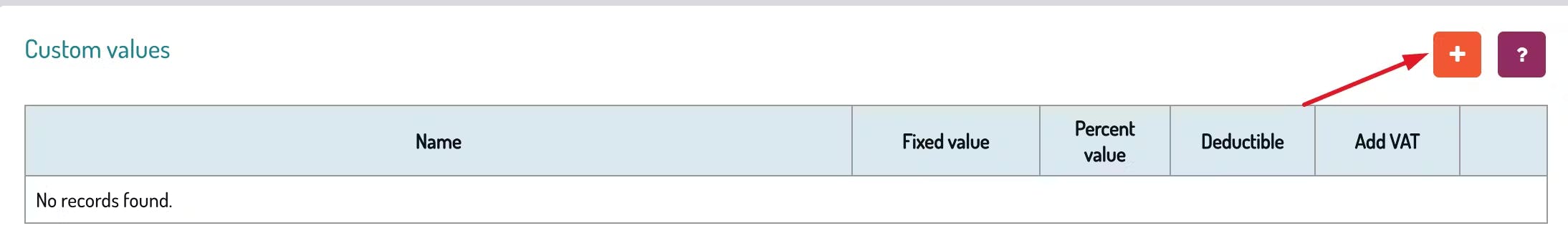 Dans la section propriétaires > règles de commission, vous trouvez toutes les règles de commission que vous avez déjà créées. Pour ajouter une valeur personnalisée, vous devrez cliquer sur le + orange que vous voyez en haut à droite.