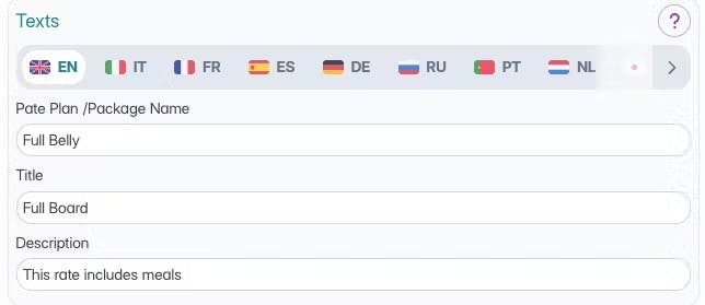 Définissez le nom de votre plan tarifaire et le traitement (Chambre seule, petit déjeuner inclus…)
