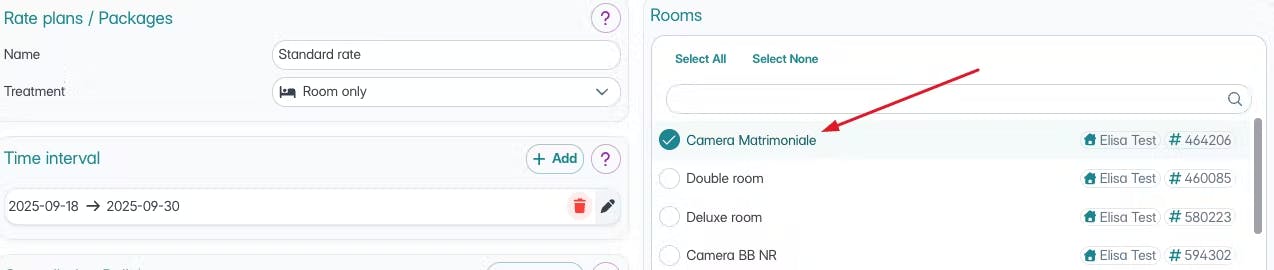 Sur le côté droit de la page, sélectionnez les chambres auxquelles associer ce plan tarifaire.