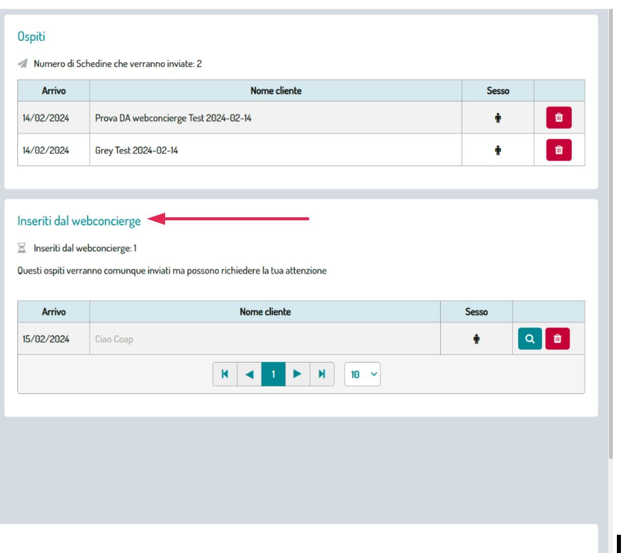⚠️ ATTENZIONE: Anche le schedine degli ospiti registrati tramite il web concierge saranno incluse nell'invio automatico dei dati al portale alloggiati.