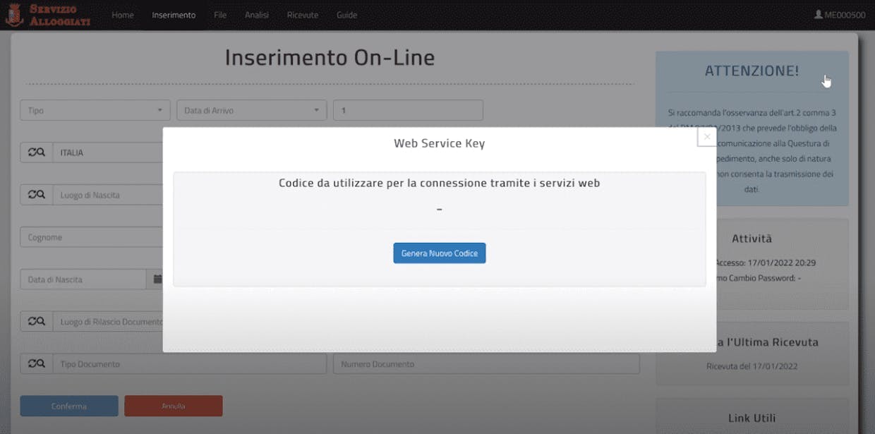 Per ricavare il webservice code nel tuo portale alloggiati.