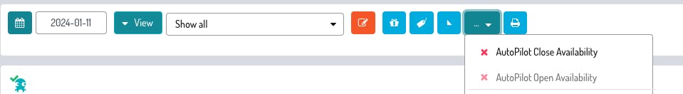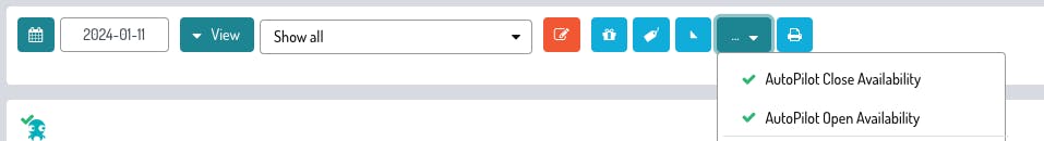 2. Accedi alla sezione Calendario e sul tasto indicato nell'immagine seleziona Autopilot Chiusura e Apertura disponibilità