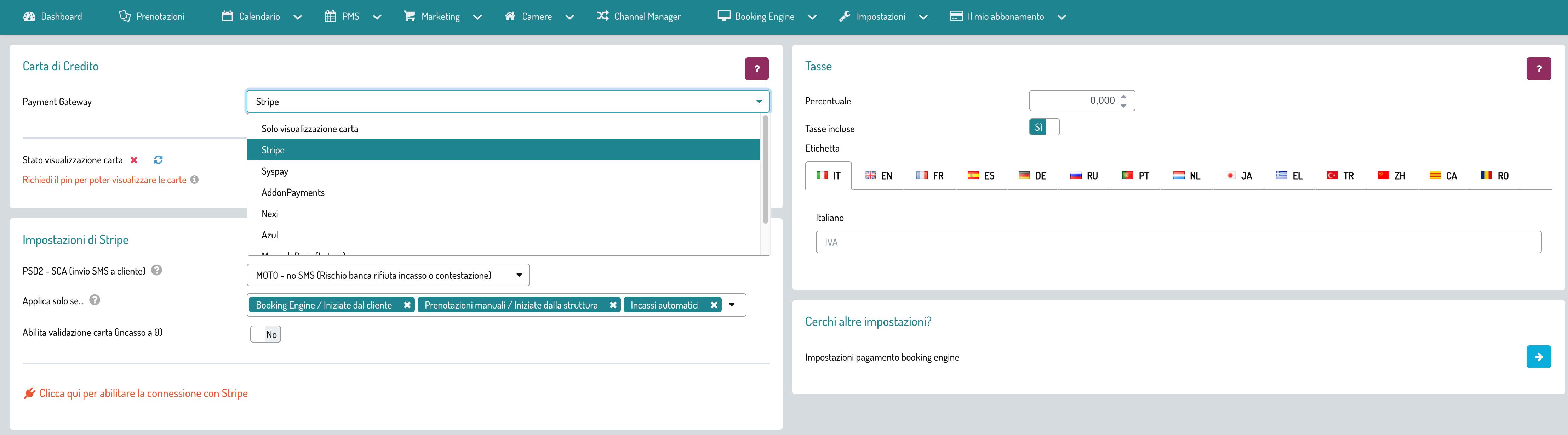 Questo avverrà in forma automatica soltanto se in Impostazioni > Incassi automatici e condizioni di vendita è stato connesso uno dei Payment Gateway tra i nostri Partner come ad esempio Stripe:
