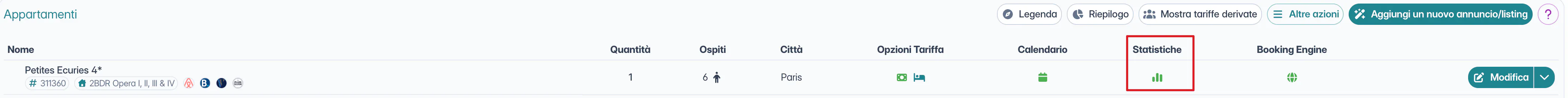Se vuoi escludere alcune delle tue tipologie di camere dal calcolo delle statistiche, potrai cliccare sull'icona apposita nella colonna statistiche in corrispondenza della camera che non vorrai comunicare: