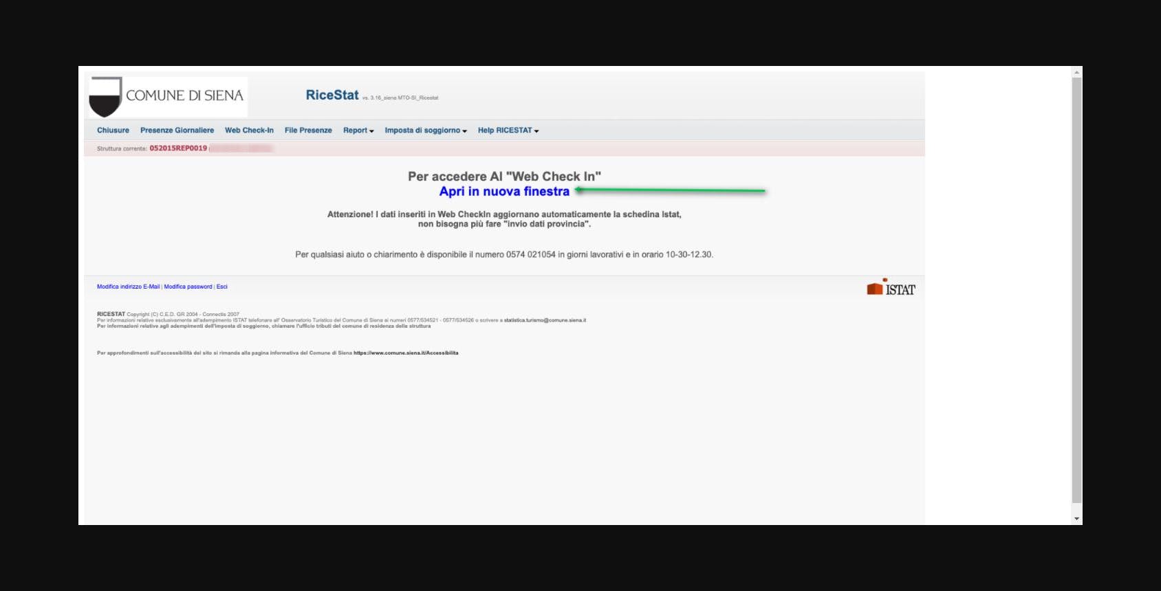 Accedi al portale Ricestat e vai su Web checking e poi clicca su Apri nuova finestra
