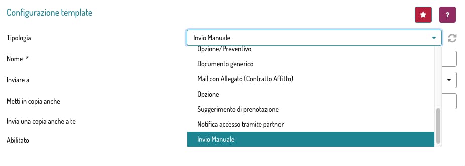 Puoi decidere la tipologia di template e quando deve essere inviato: