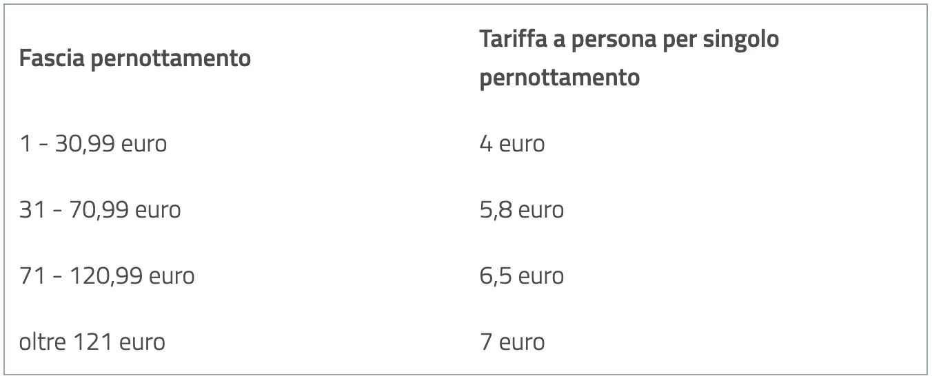Per soggiorni in campeggi e ostelli l’imposta prevista consiste in una tariffa fissa di 2,80 euro per pernottamento/persona.