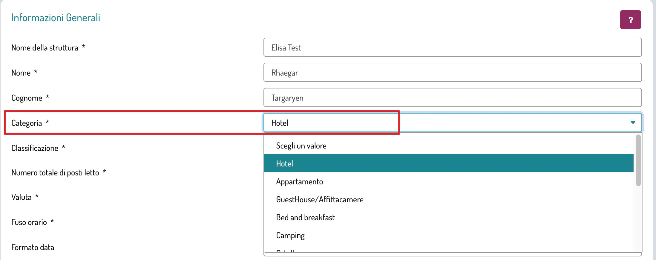 Inoltre configura correttamente anche la categoria della tua struttura, indica se si tratta di un hotel, di un vacation rental, di un ostello o un campeggio: