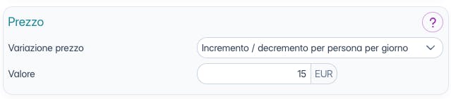 Selezionerò quindi una variazione Incremento/decremento per persona al giorno dal menù a tendina e inserirò 15 come valore 👇