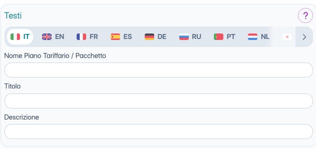Nella sezione Testi troverai le voci Etichetta, Titolo e Descrizione, quelle che il cliente visualizzerà sul Booking Engine in fase di prenotazione.