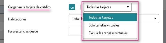 También puedes elegir la tipología de tarjeta a cobrar: todas las tarjetas, solo las virtuales, excluir las virtuales