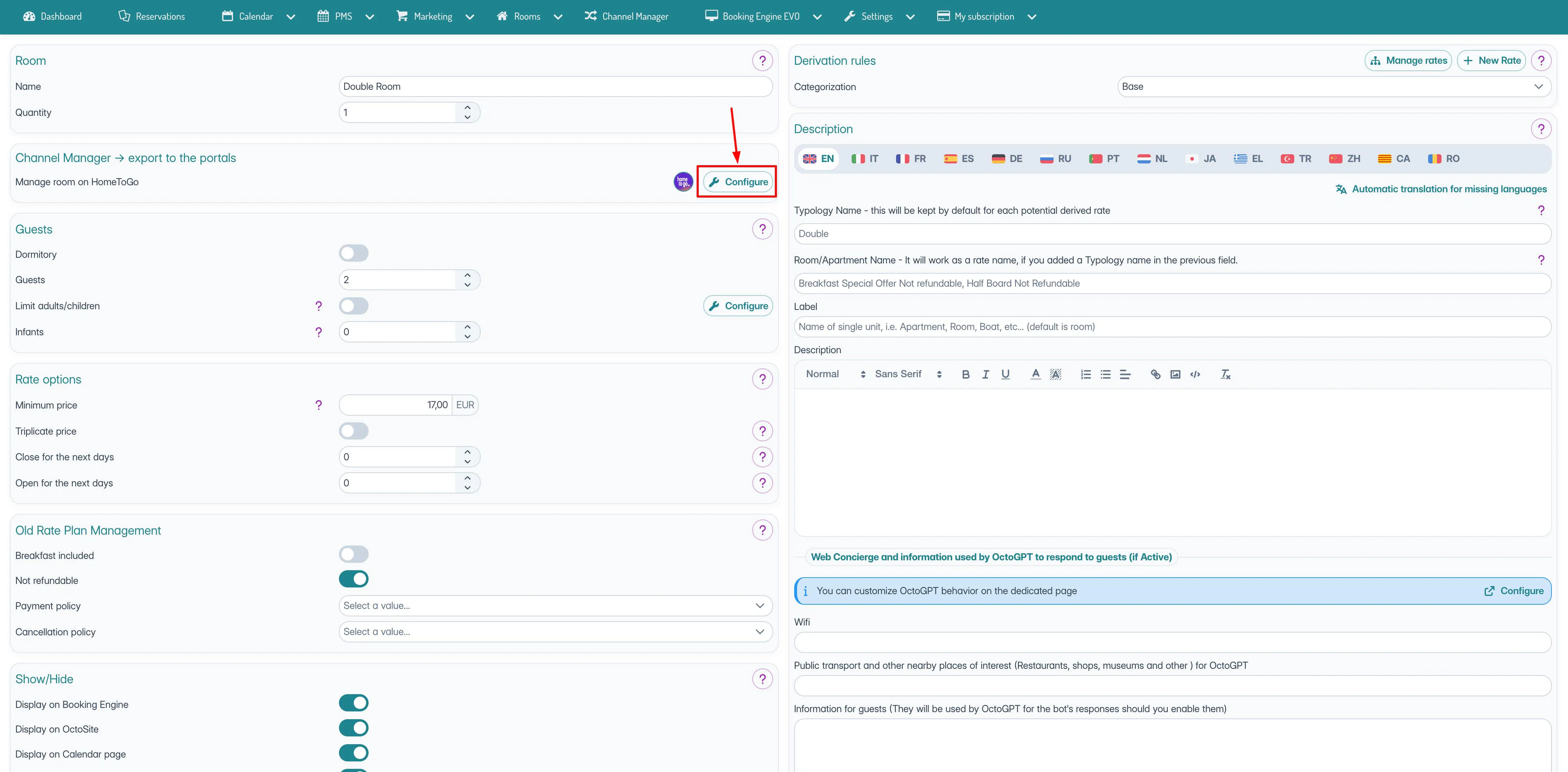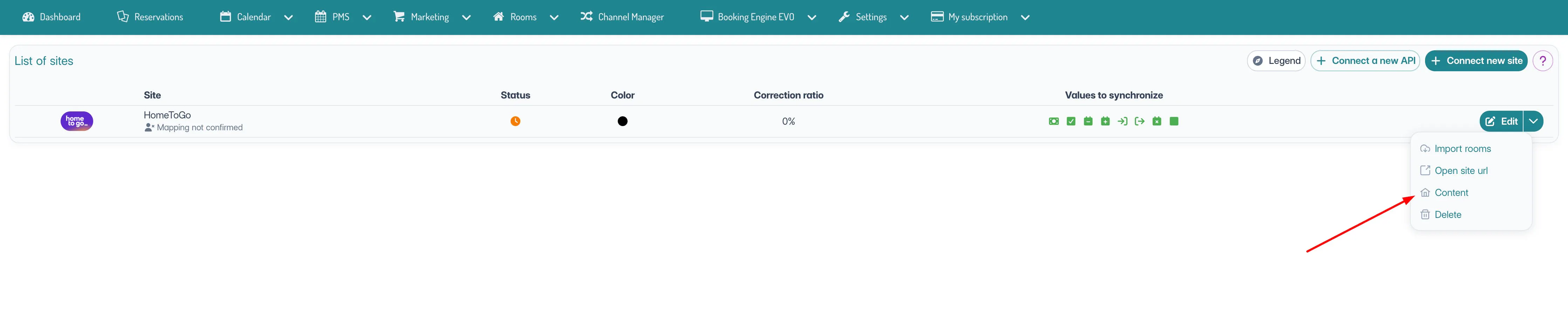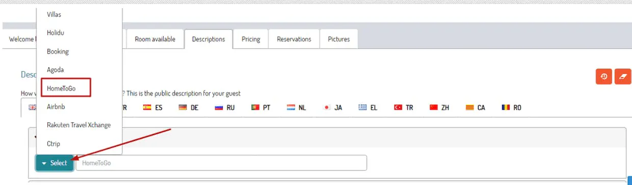 Dale a channel manager > conectar nueva página y selecciona Hometogo.