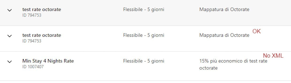 También es necesario que en el apartado "planes tarifarios" aparezcan con "mapeado en octorate" y no con la regla de precio puesta en Booking.