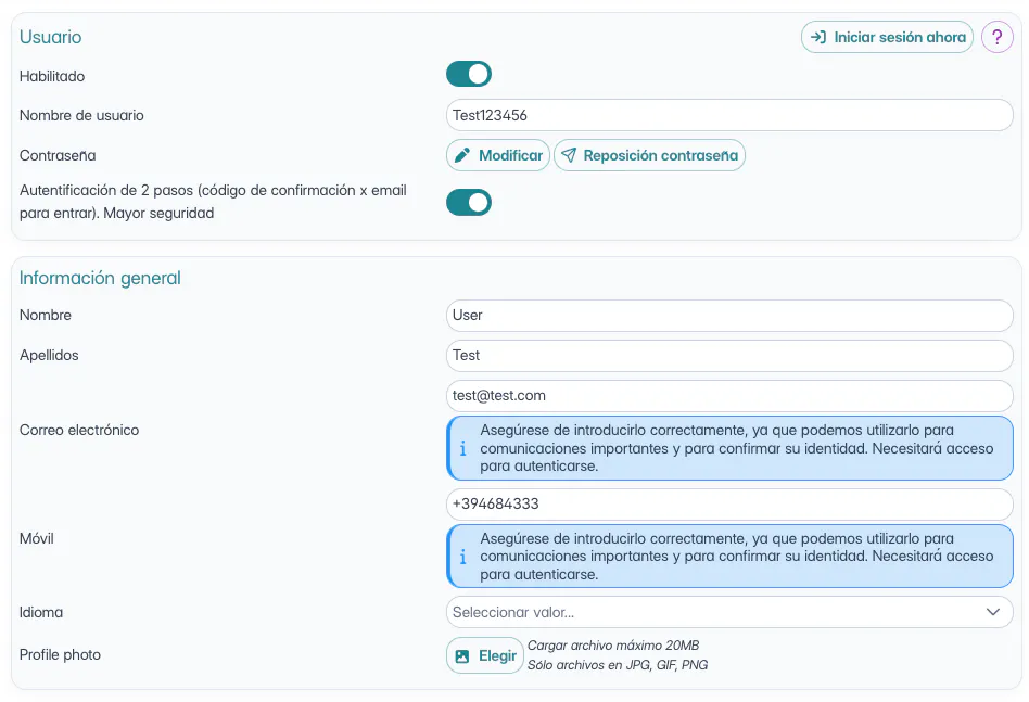 luego inserta sus datos personales en el apartado de Informaciones Generales.