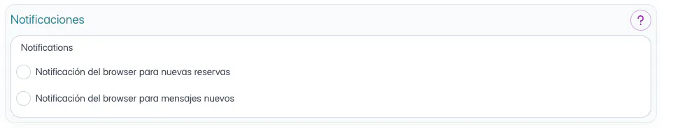 En la parte inferior de la página también puedes decidir si este usuario podrá recibir notificaciones del browser sobre nuevas reservas y nuevos mensajes recibidos.