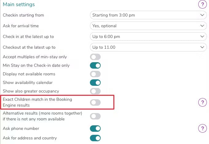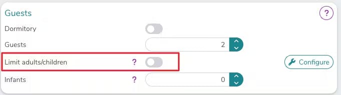 - que en la página de configuración en Habitaciones/Apartamentos > Modificar, la presencia de niños no sea especificada por la opción Limitar Adultos/Niños.