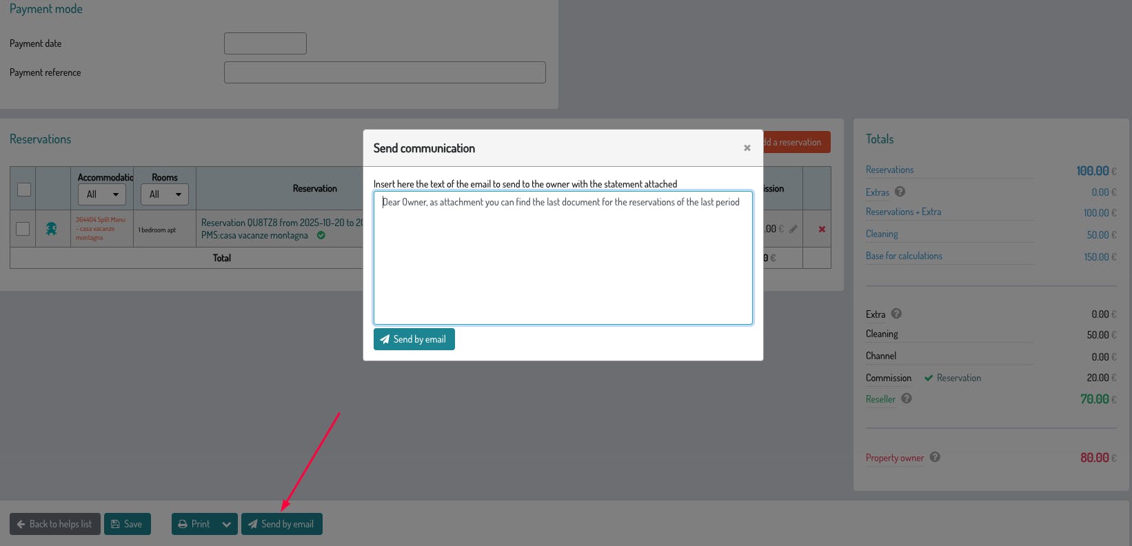 Una vez que hayas generado tus liquidaciones de pago, podrás decidir enviarlas por correo electrónico al propietario correspondiente.