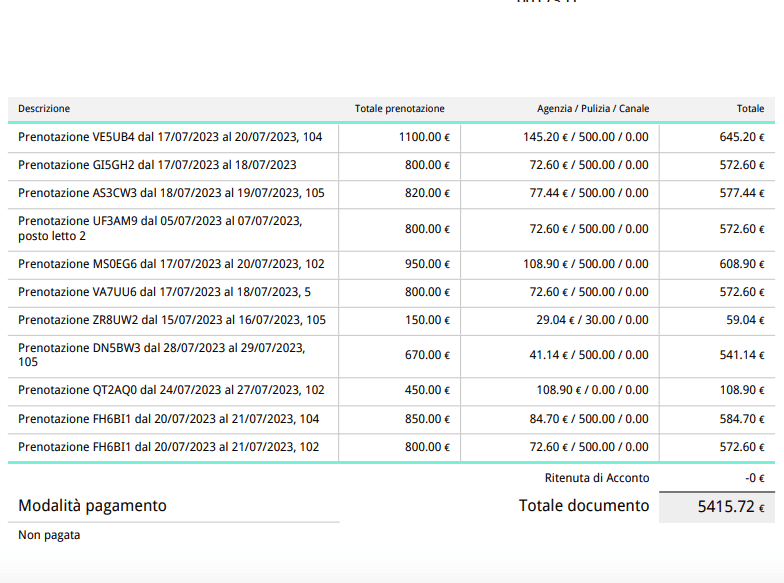 ⚠️ N. B. Con respecto a las reservas canceladas, el sistema no tiene en cuenta las Políticas de Cancelación. En consecuencia, si tus ganancias se calculan en porcentaje según la penalización por cancelación, tendrás que actualizar los importes manualmente en el documento. Cada reserva también muestra los ingresos totales registrados en los detalles de las reservas individuales.