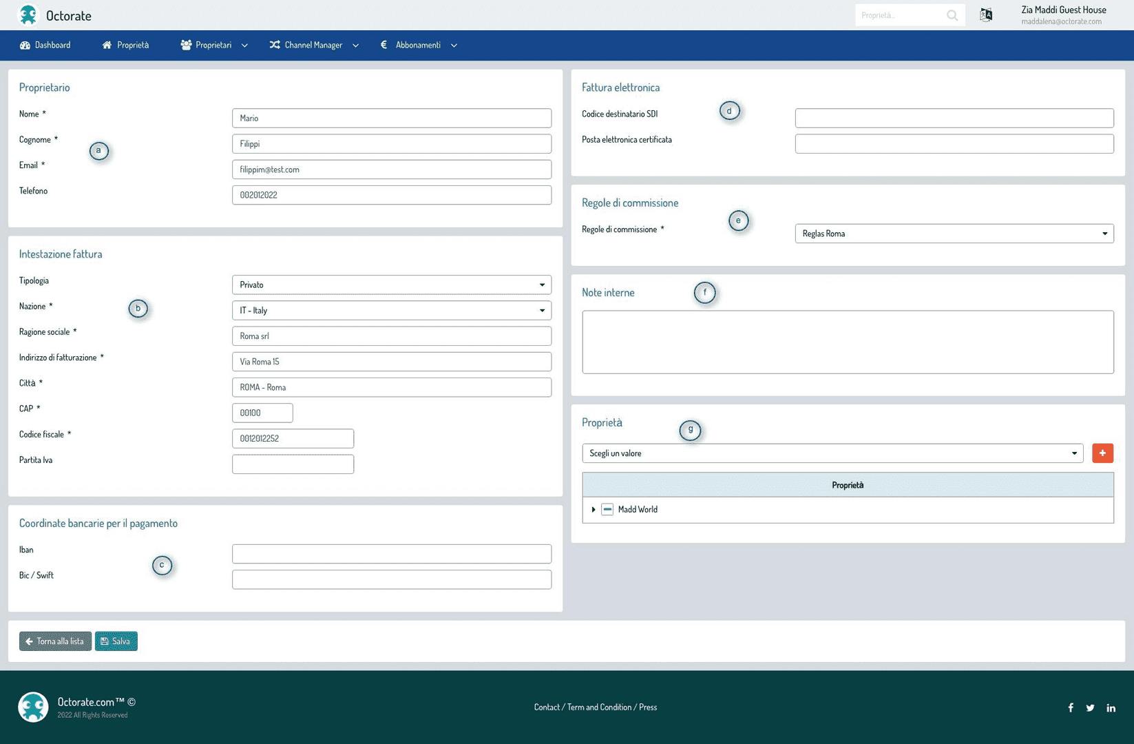 g - seleccionar las propiedades específicas en Octorate conectadas este propietario