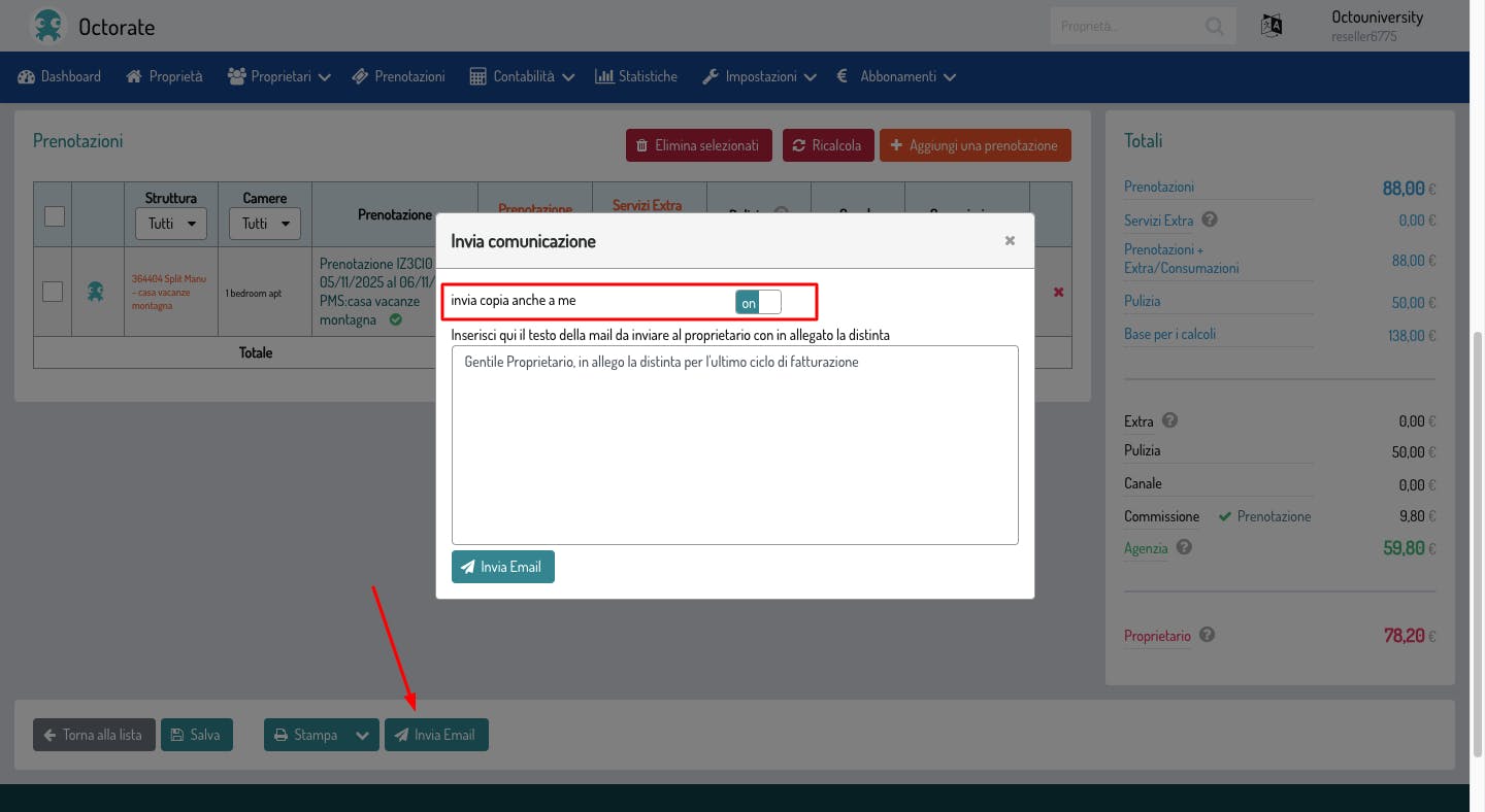 Cliccando sul tasto Invia Email, potrai inserire un testo personalizzato da mandare ai proprietari e quindi mandargli l'allegato: