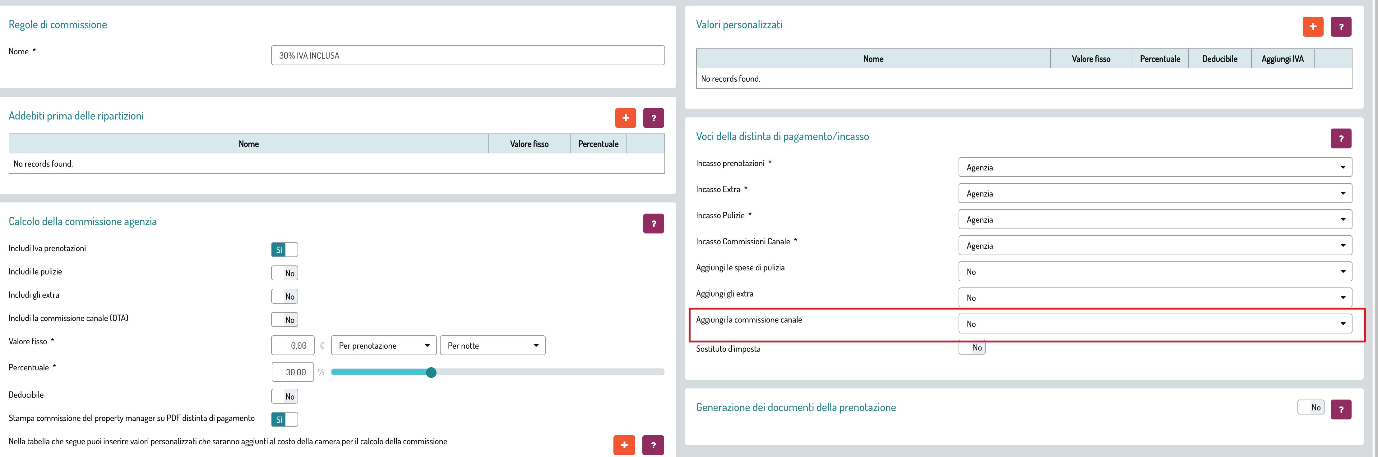 Se nelle regole di commissione l’opzione Aggiungi le commissioni canale è impostata su NO:
