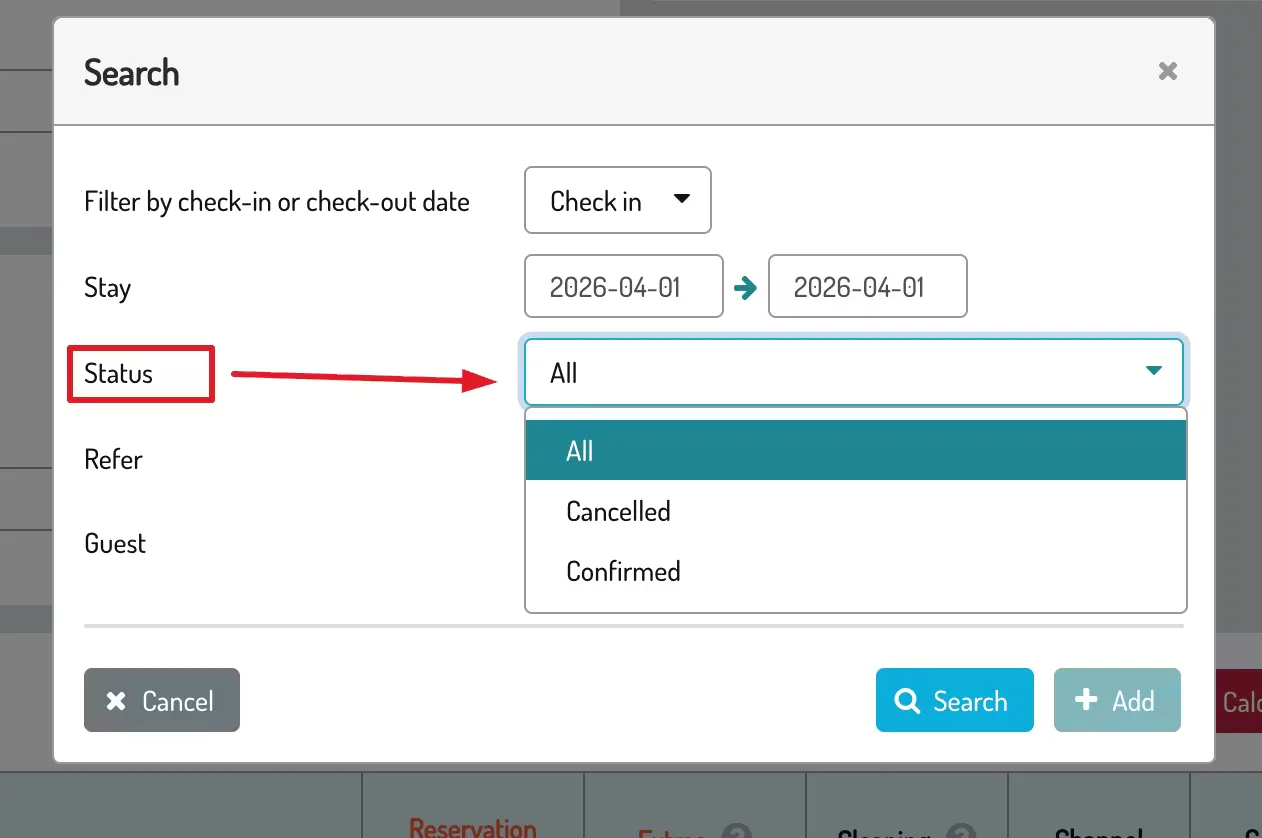 • Sélectionnez le statut (confirmées, annulées ou les deux)